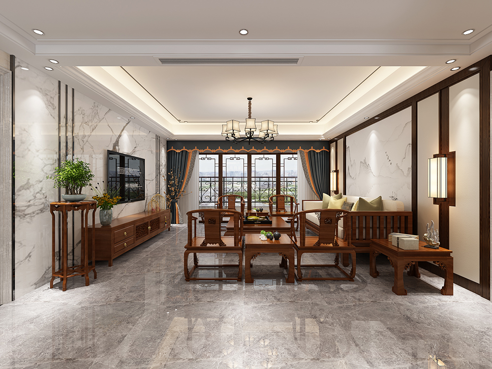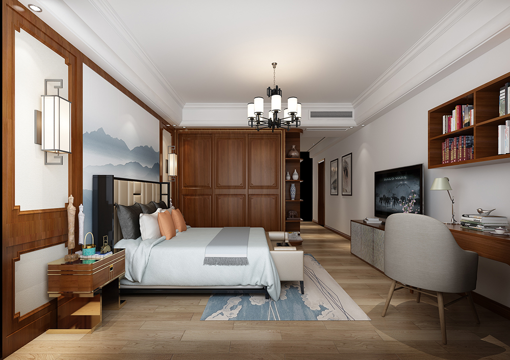 梅州奧園天韻灣四居新中式風格裝修效果圖