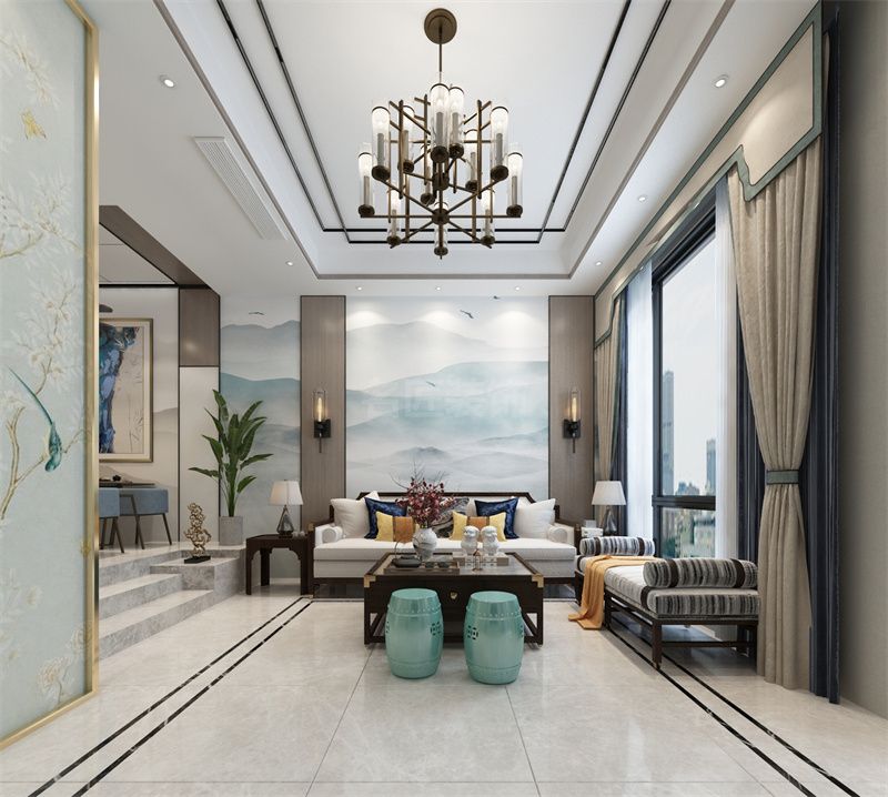 秦皇島孔雀城別墅新中式風格裝修效果圖