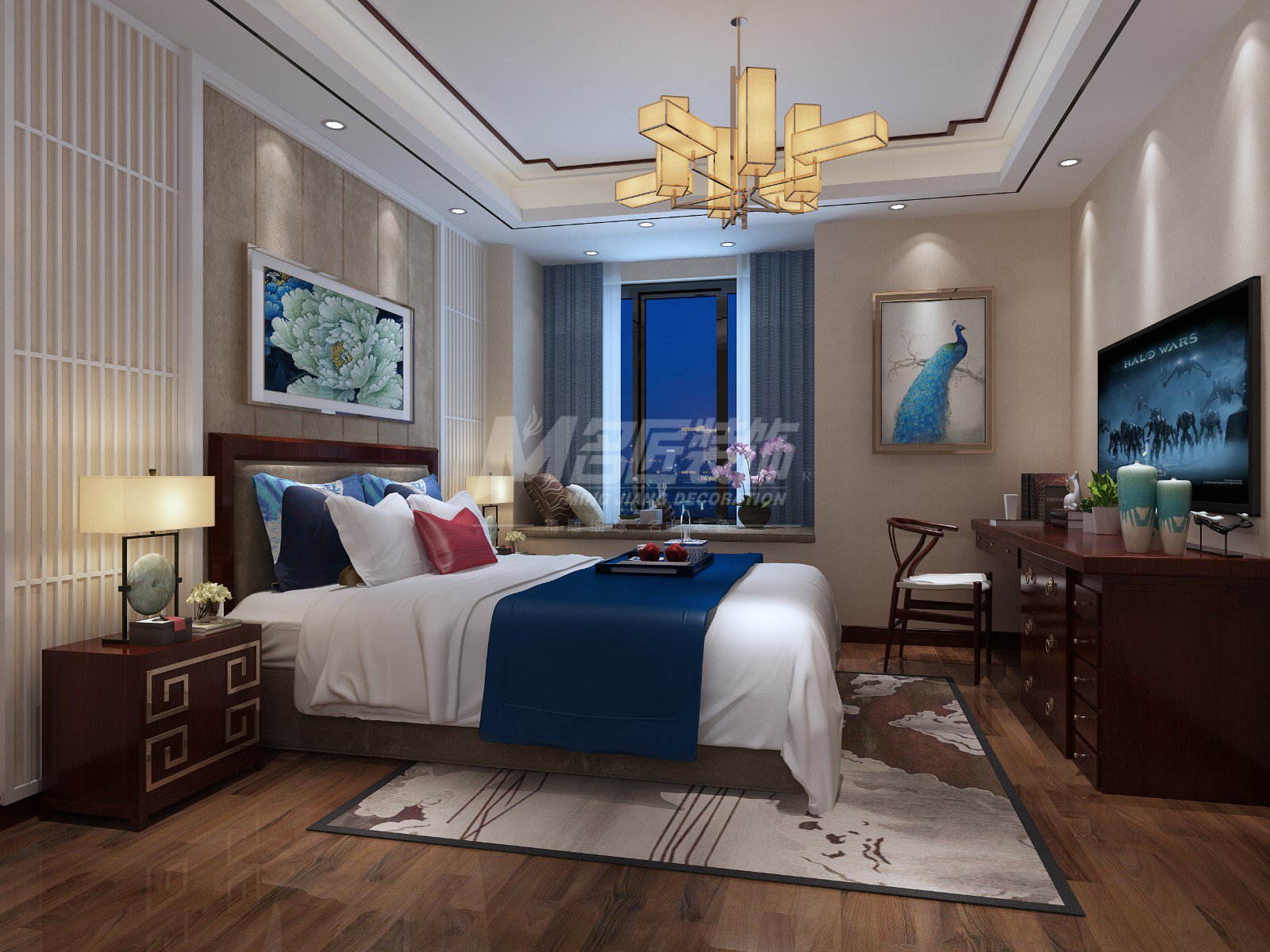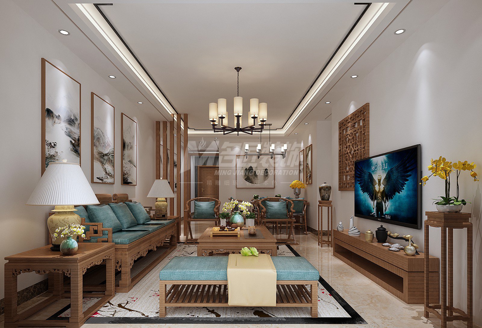 黔西南布依族苗族自治州濱海悅城三居新中式風格裝修效果圖