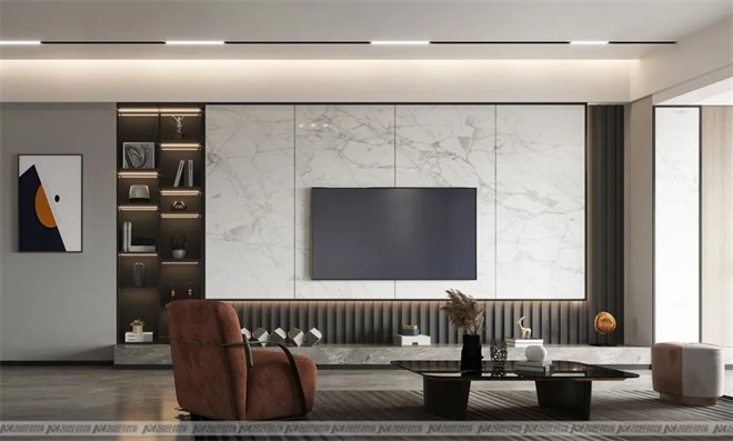 客廳的設(shè)計(jì)極具匠心,設(shè)計(jì)師通過(guò)不同材質(zhì)的替換拼接及色彩搭配,為整個(gè)空間定下了精致優(yōu)雅的基調(diào)賓利橙+高級(jí)灰的經(jīng)典搭配,將時(shí)髦感與奢雅感引爆,撩動(dòng)心弦。