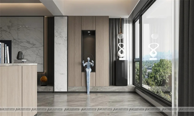 進(jìn)入玄關(guān),已然感受到彌漫在空間里的現(xiàn)代輕奢感,造型獨(dú)特的人物雕塑及藝術(shù)性擺件,使玄關(guān)的設(shè)計(jì)感更加充盈