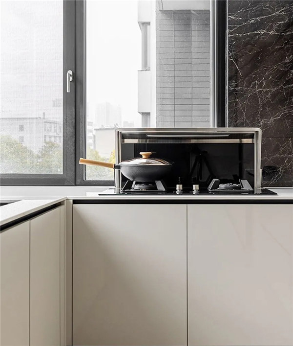 廚房整體白加黑的搭配,靜謐沉穩的氣息,蔓延廚房的每一個角落。