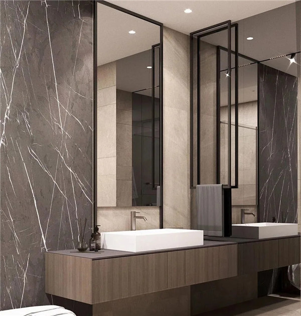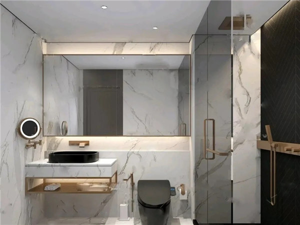 主衛和次衛都采用干濕分離,搭配石紋瓷磚和木紋板材營造簡約、舒適的環境,無需太亮眼的色調也能時尚耐看。