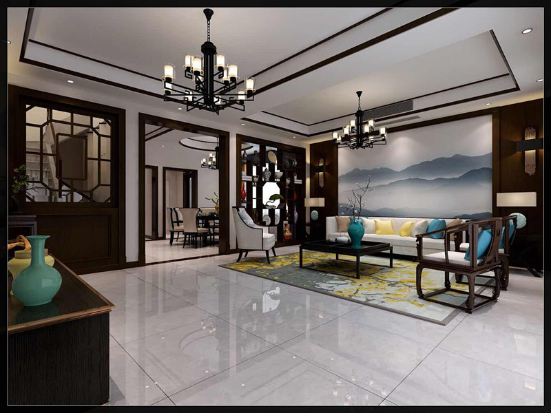 合肥華邦新華城別墅新中式風(fēng)格裝修效果圖