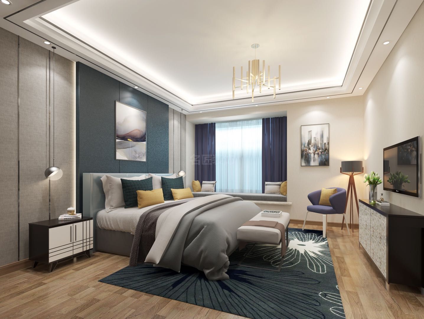 佛山博奧城三居現代簡約風格裝修效果圖