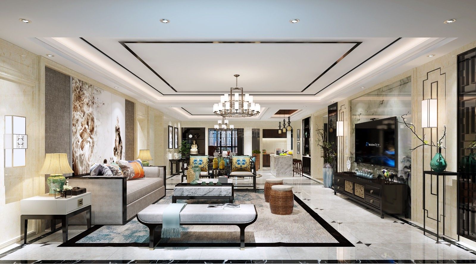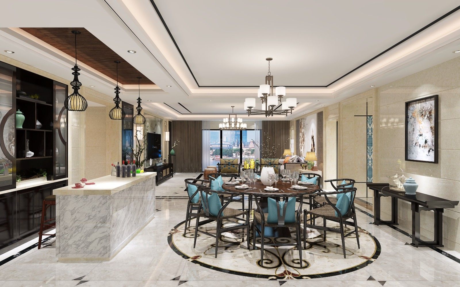 佛山杏壇可園三居新中式風格裝修效果圖