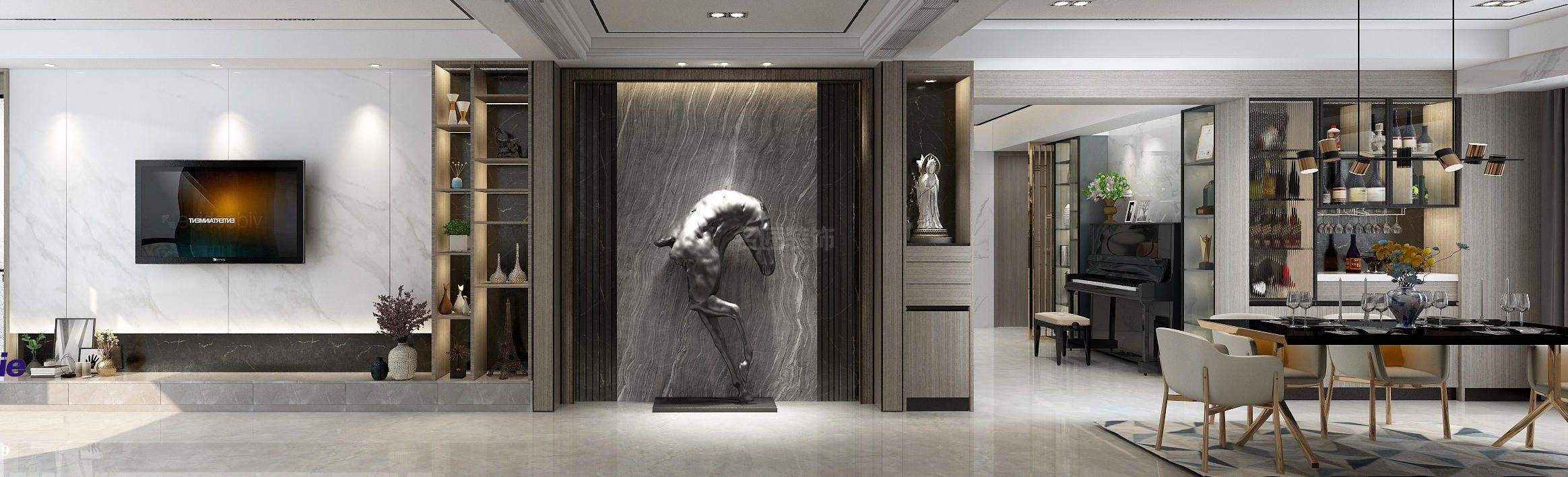 中山龍山華府平層輕奢風格裝修效果圖