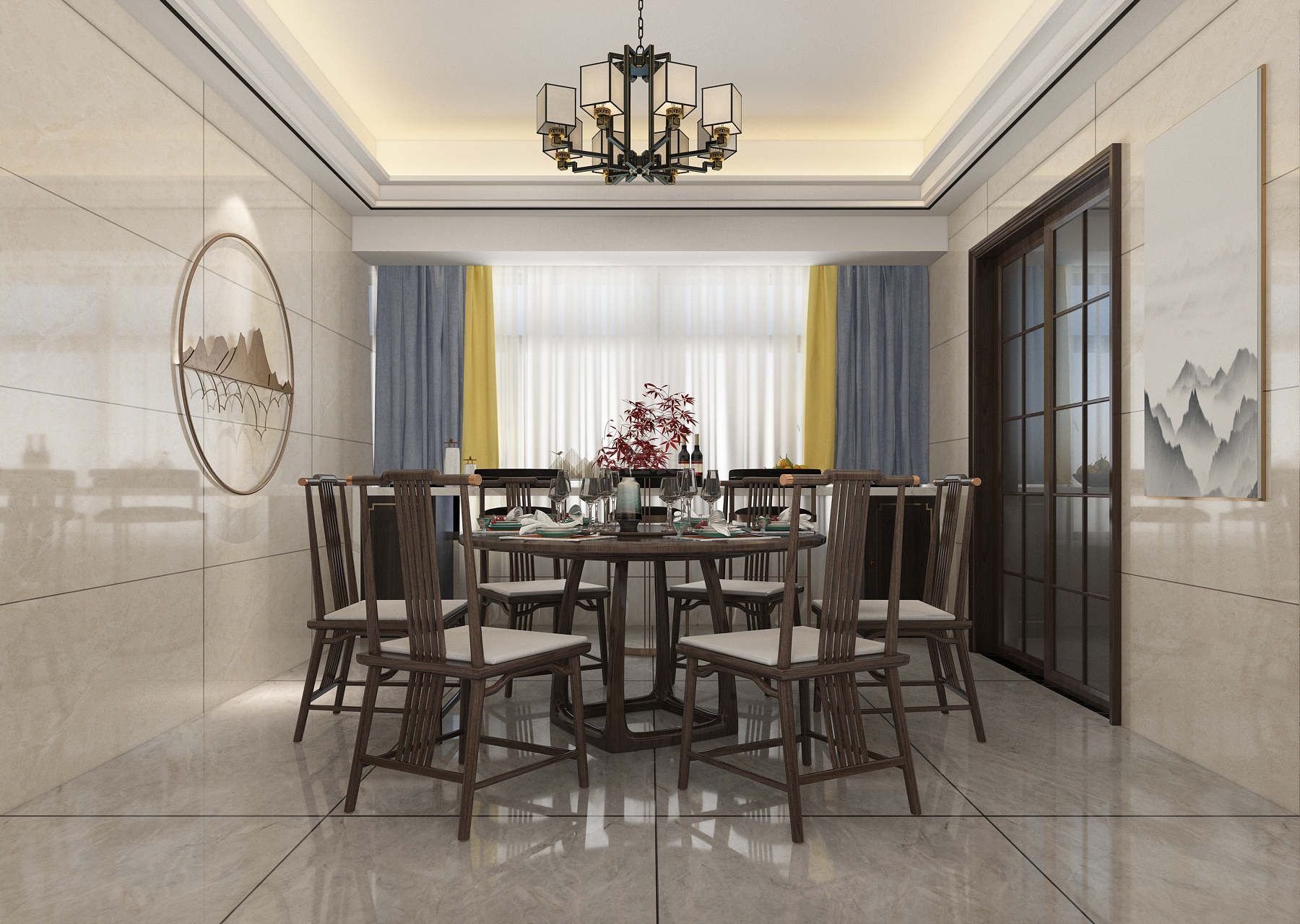 江門101-200平米新中式風格雍逸廷家裝設計效果圖