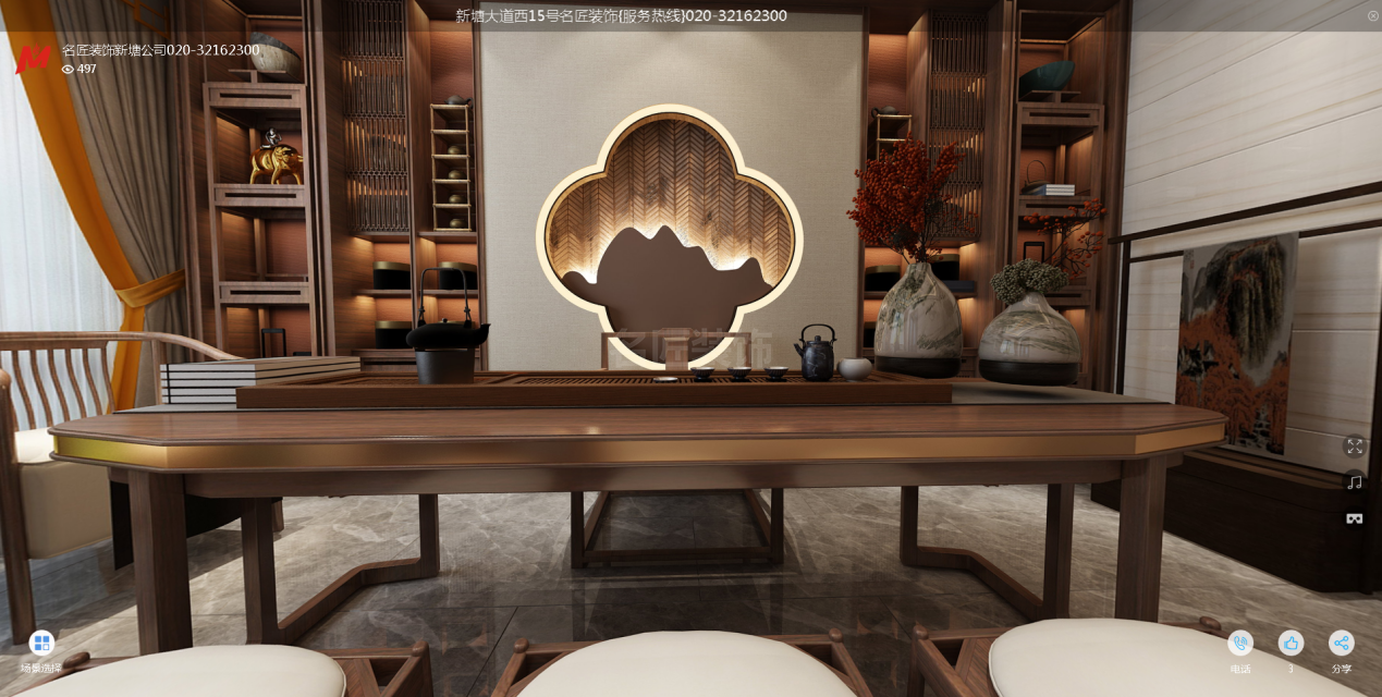 廣州湖山國際山崎街復式新中式風格裝修效果圖