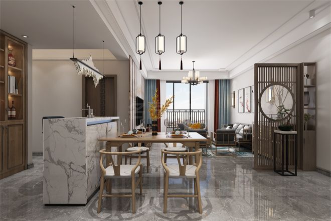 中山天水湖三居新中式風格裝修效果圖