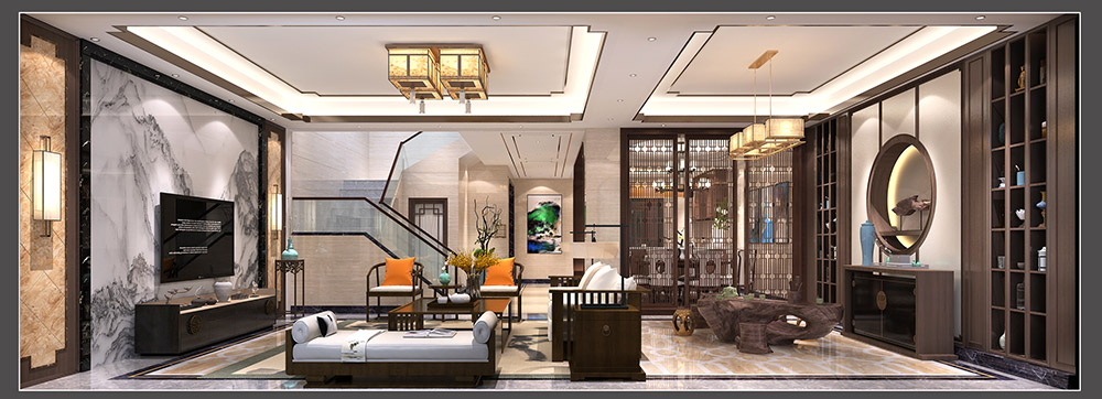 佛山東逸灣翠河澗別墅新古典風格裝修效果圖