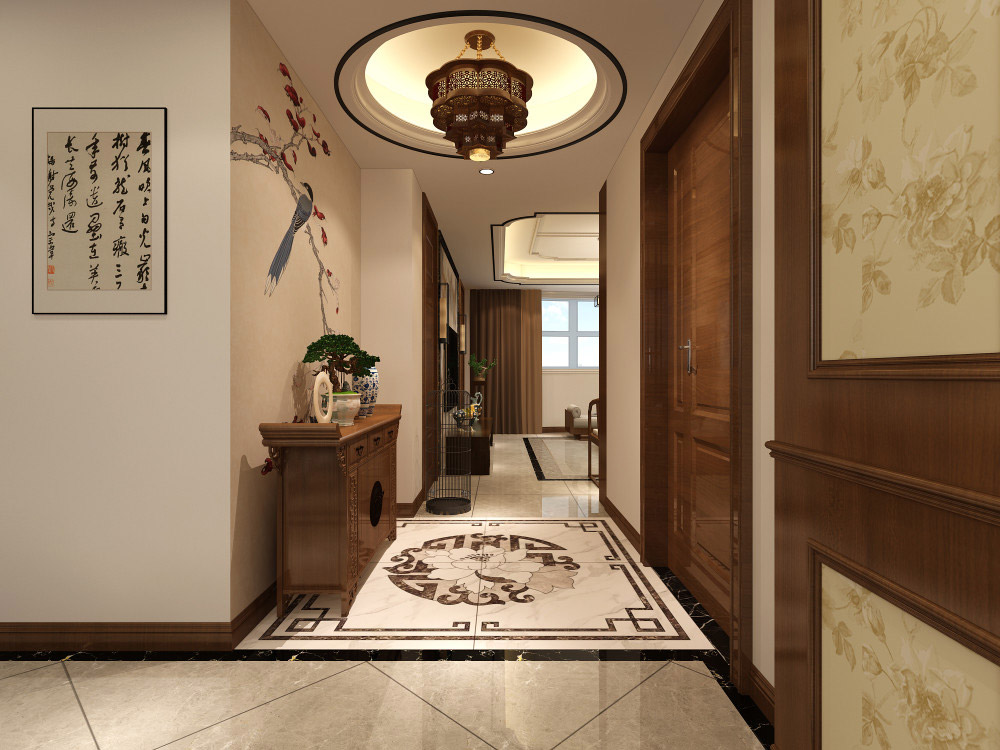 秦皇島達潤御園三居新中式風格裝修效果圖